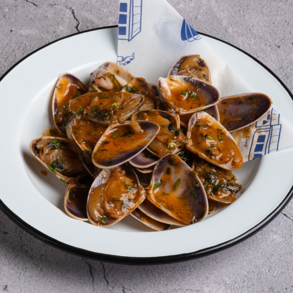 Picked pipis, black pepper sauce, spring onion and pecorino